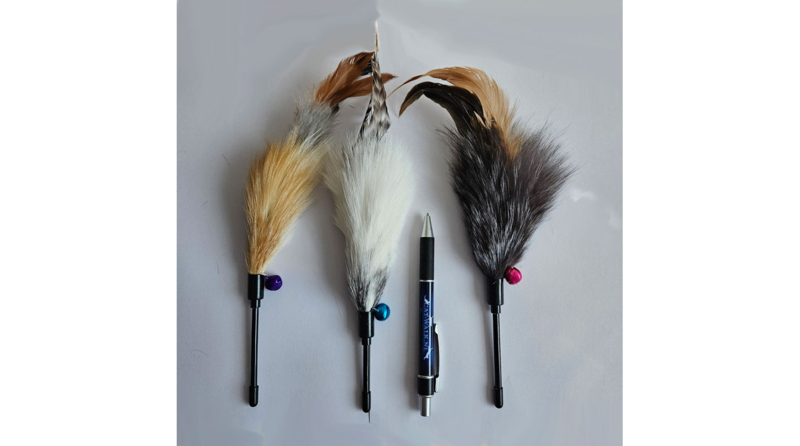 Deze veren navulling heeft een oogje waarmee het aan deen hengel bevestigd kan worden. Zo kunt u meerdere teasers gebruiken met 1 hengel.